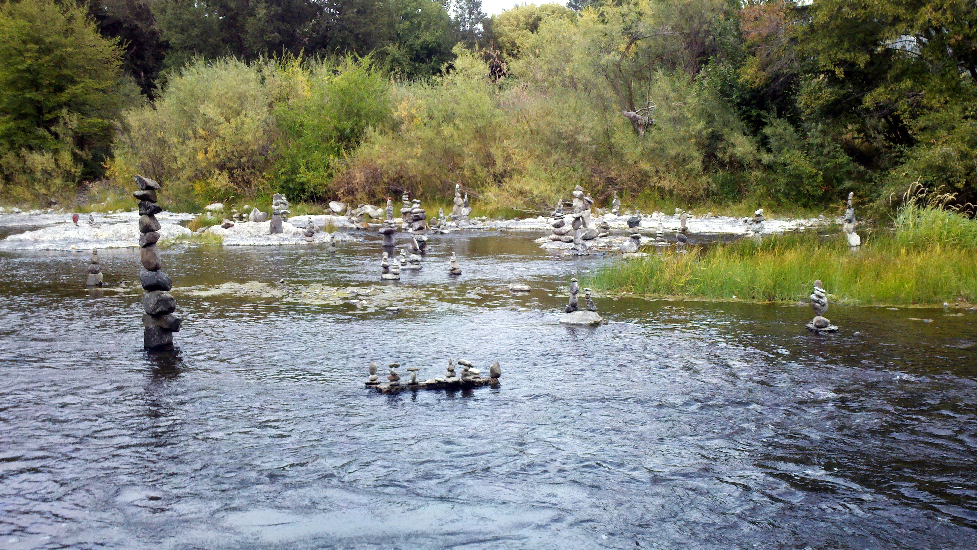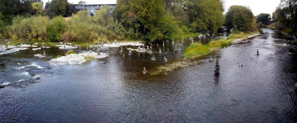 Over the last week or so, as Sarah and I take our daily walk we’ve seen a guy stacking stones near a small falls in the middle of town.